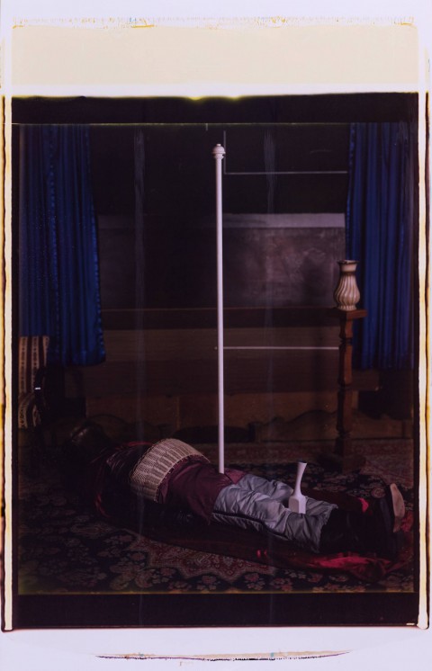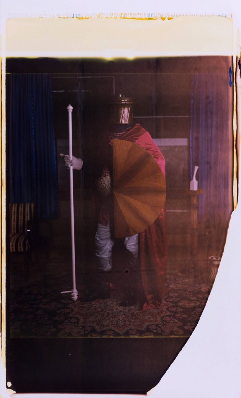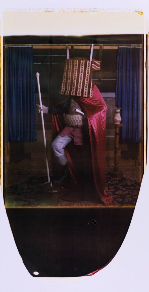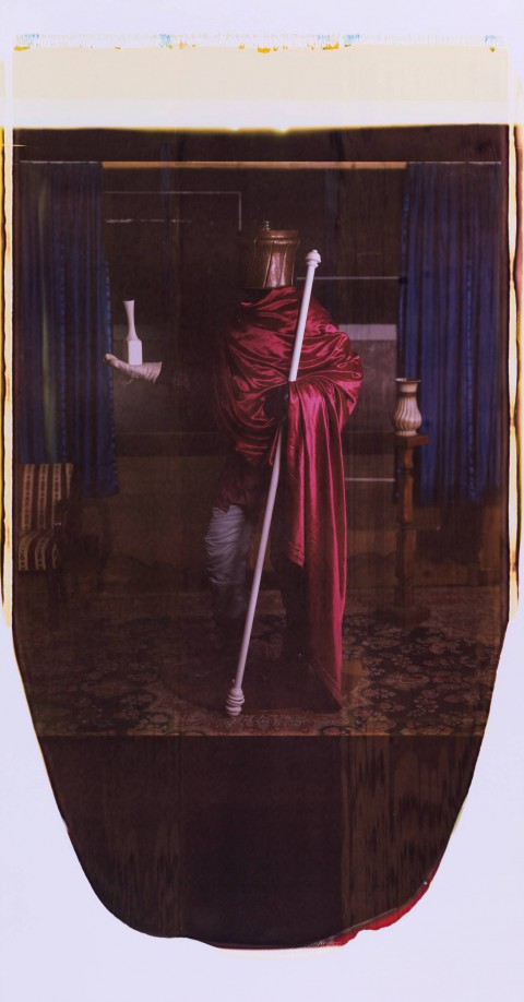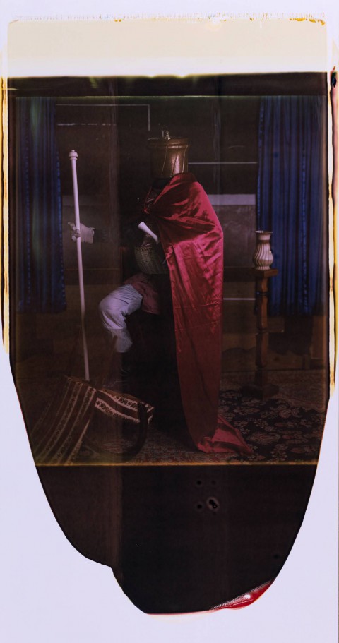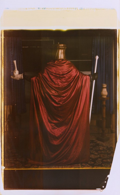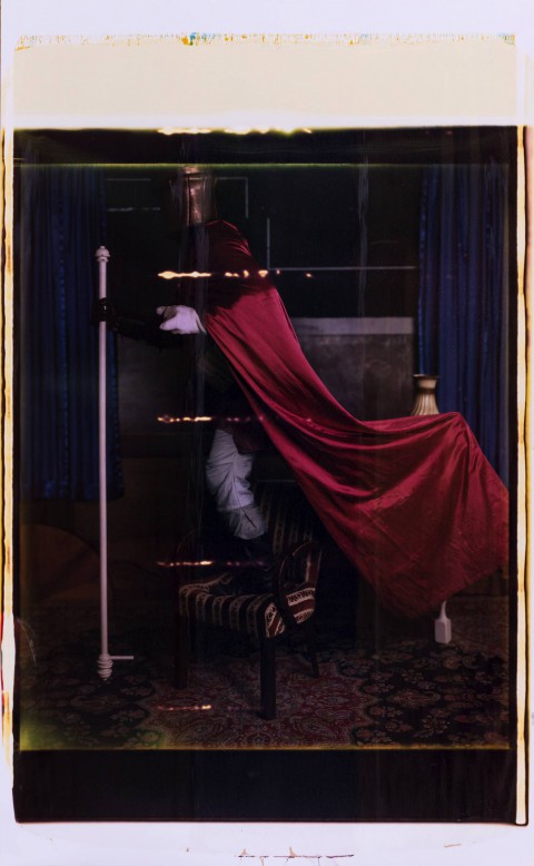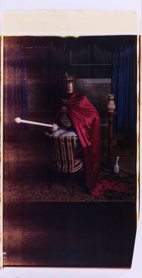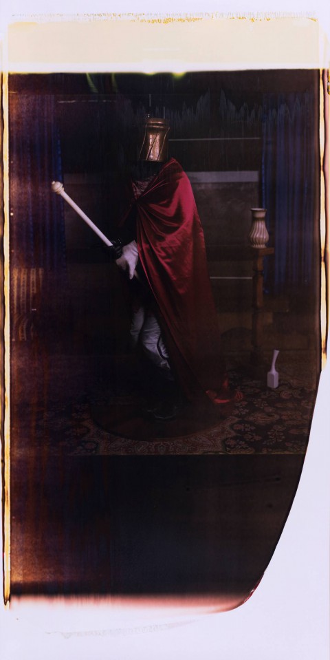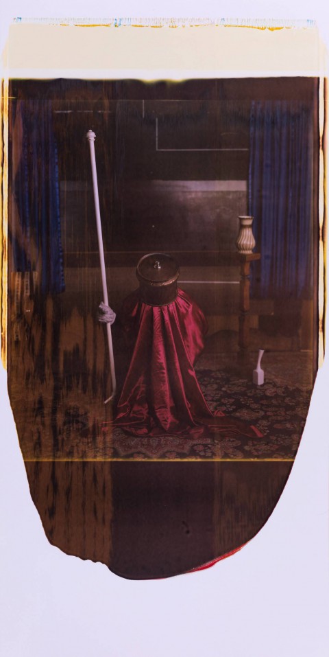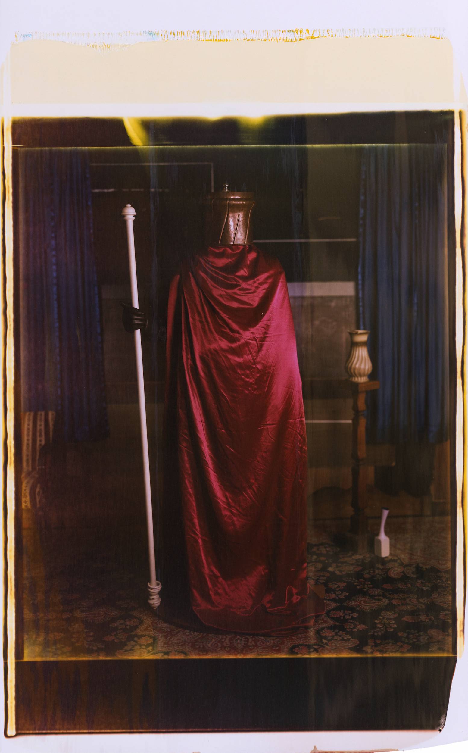 In an opulent, ironically exaggerated pose of authority, Thorsten Brinkmann presents himself as a ‘king’ — or rather, a parody of one. Fifty large-format Polaroids were taken on an improvised stage made of carpets, curtains and found objects from his studio at the Supersense studio in Vienna, using the last colour film from this rare 24×20-inch camera. Each photograph is unique, characterised by spontaneous exposure errors, colour shifts and flowing image edges — embracing chance as an artistic accomplice. The entire series is numbered, stamped and signed by the artist on the back.